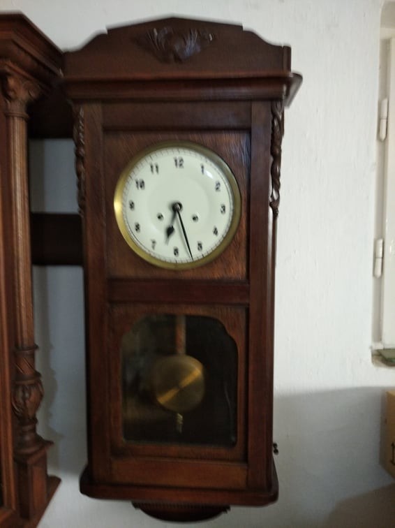 Félkor egyet, egészkor az aktuális óraszámot üti. Gyönyörű hangja van.Kulcs van hozzá ,egy felhúzással 7 napot jár.